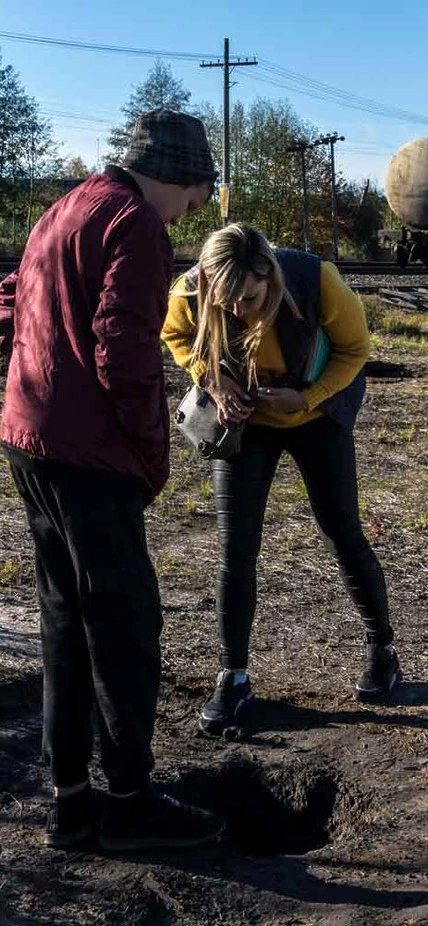 Tymofiy bekræfter med et smil og er nærmest stolt. Han trækker Julia Semenets over på den anden side af skinnerne, hvor der er dybe huller i jorden.